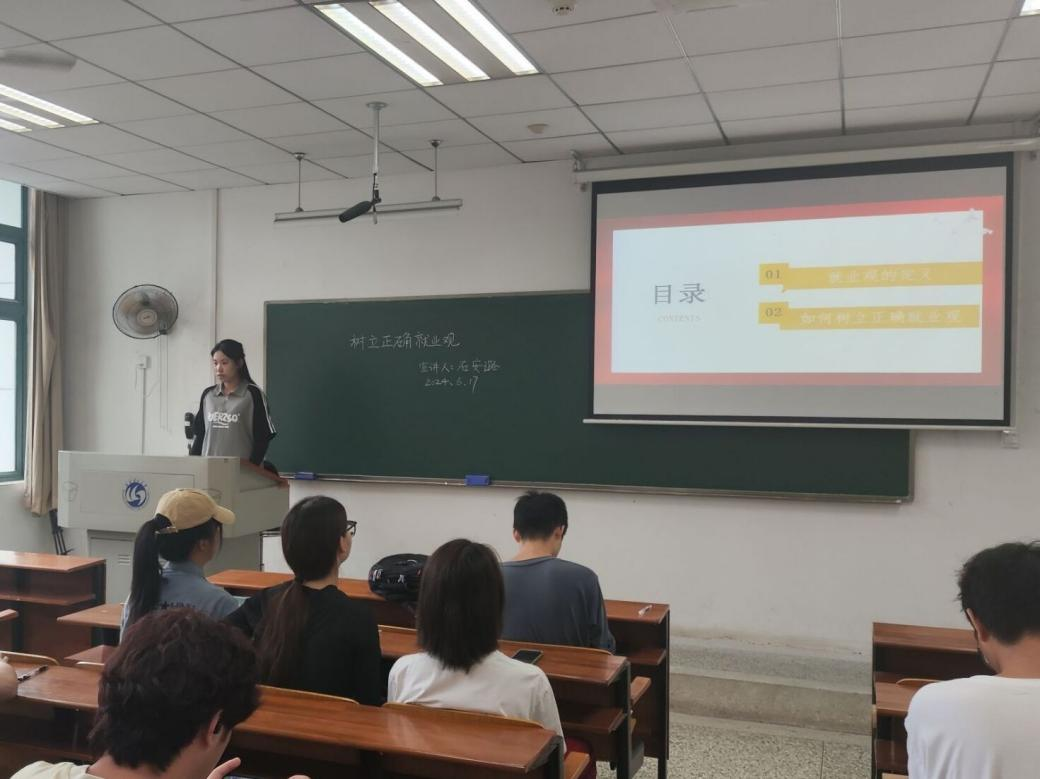 活动伊始,在团支书石安璐的带领下,同学们共同观看关于就业观的相关宣传视频,一同深入了解当今社会发展背景下就业形势的演变,感悟树立正确就业观的重要价值意义。接着,同学们分成小组,围绕“未来的就业观”话题展开讨论,支部成员们积极发言,分享自己的相关见解与感悟。讨论结束后,每组分别派出代表进行观点阐述,通过观看视频以及积极讨论,同学们明白了让敬业成为青年自觉、自愿、自主的行动选择的重要性。